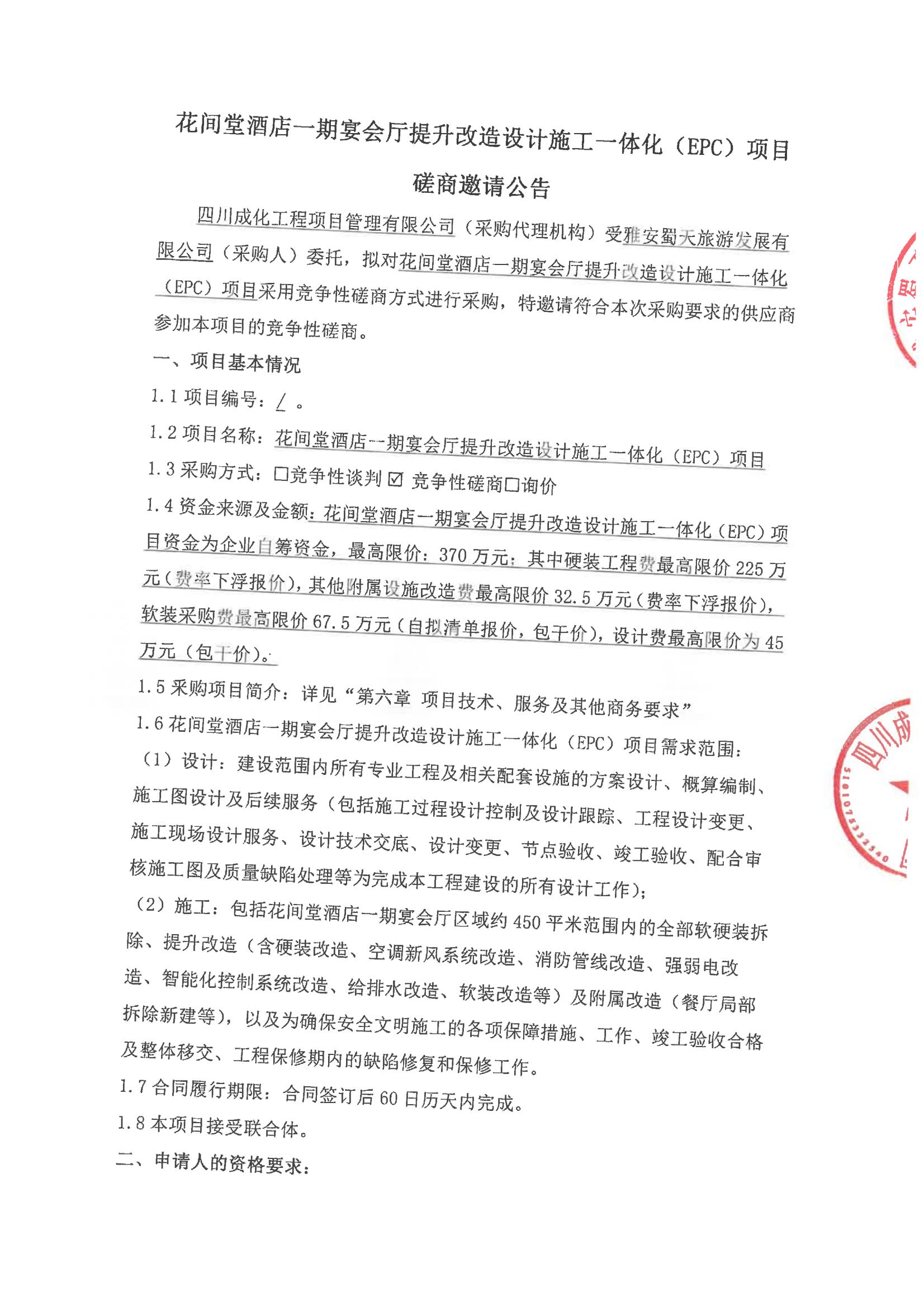 花間堂酒店一期宴會廳提升改造設(shè)計施工一體化(EPC)項(xiàng)目磋商邀請公告(1)