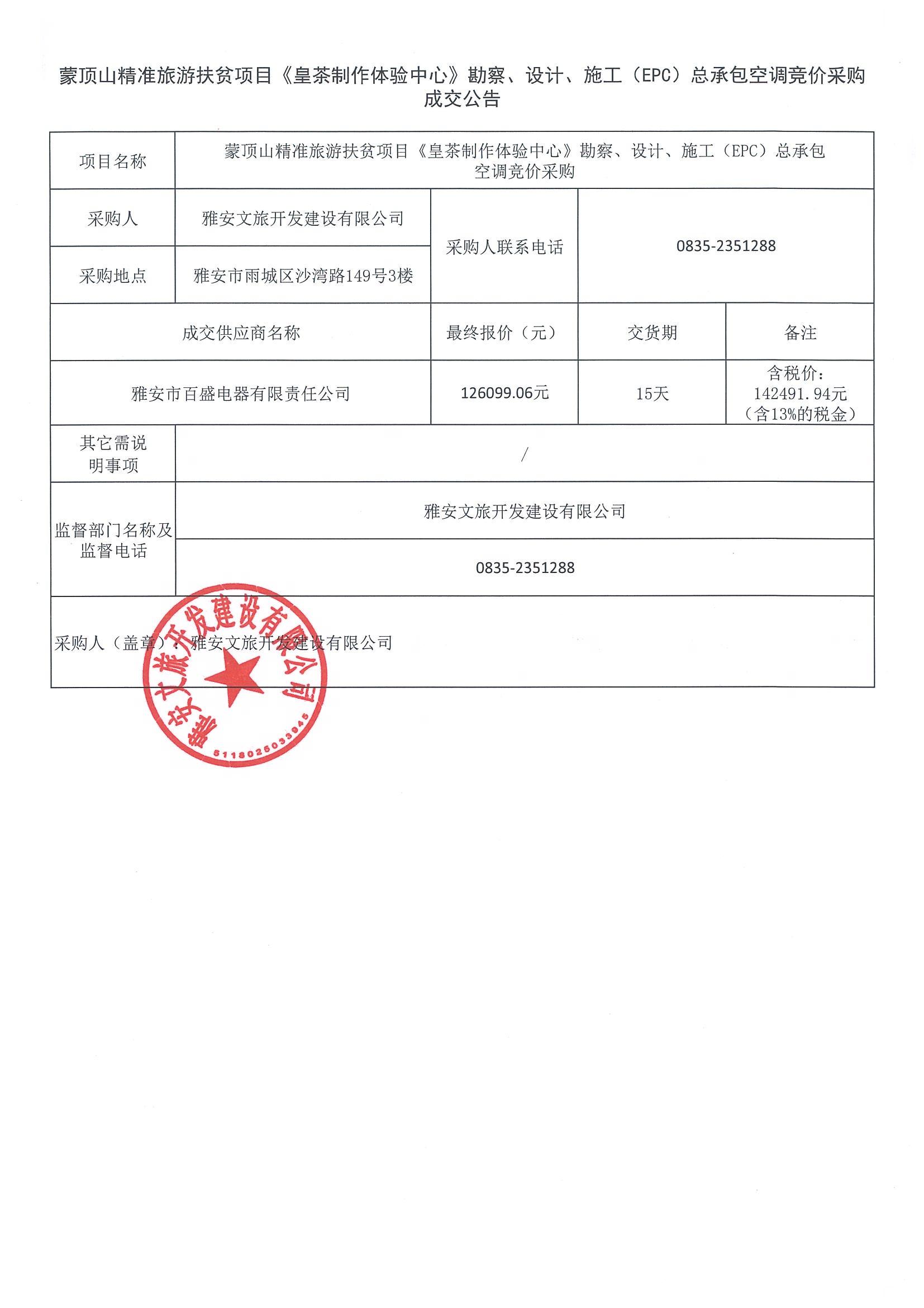 皇茶項目空調(diào)競價采購成交通告