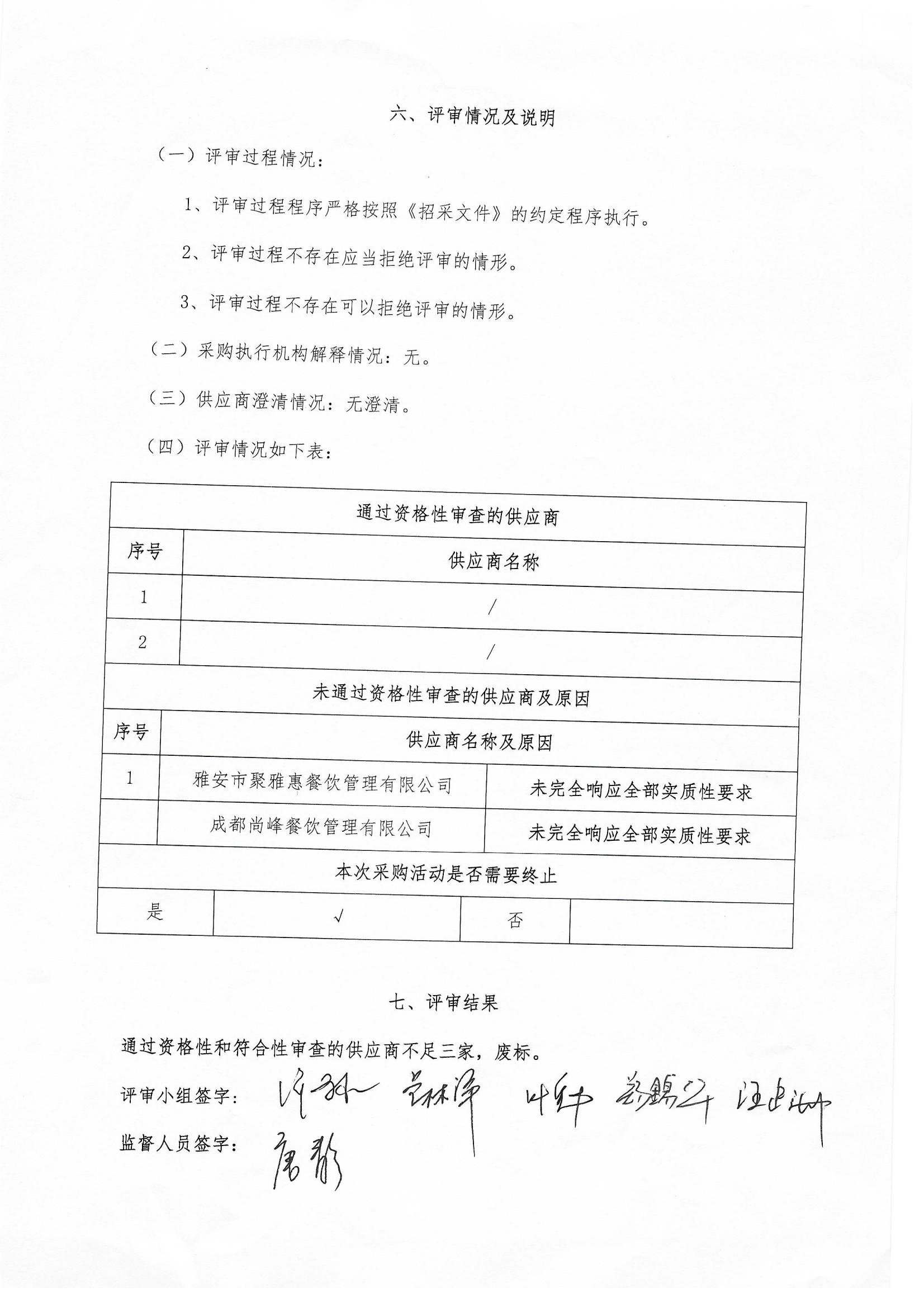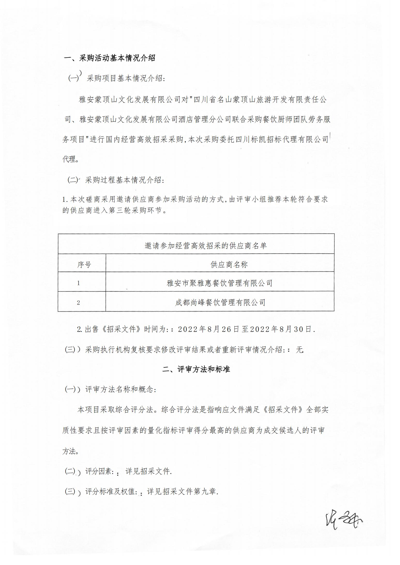 雅安蒙頂山文化發(fā)展有限公司酒店管理分公司聯(lián)合采購餐飲廚師團(tuán)隊勞務(wù)服務(wù)項目評審報告