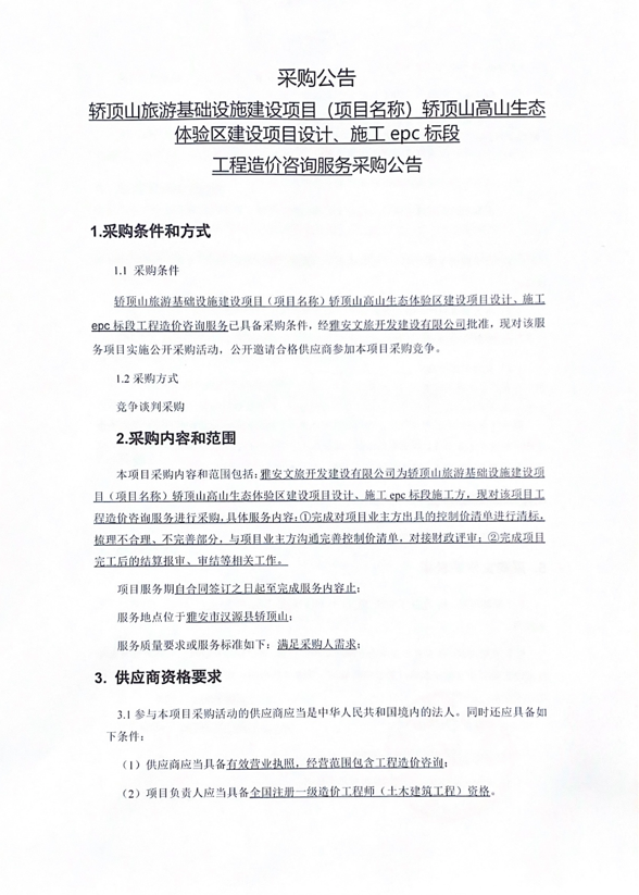 轎頂山旅游基礎(chǔ)設(shè)施建設(shè)項目(項目名稱)轎頂山高山生態(tài)體驗區(qū)建設(shè)項目設(shè)計、施工epc 標段工程造價咨詢服務采購公告