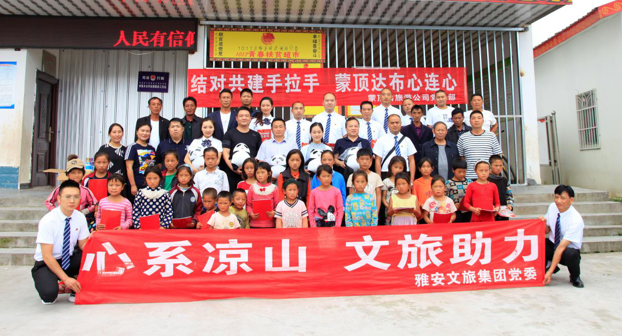 2019年7月6日,雅安文旅集團黨委副書記、工會主席殷麗華帶隊,雅安文旅集團副總經(jīng)理、蒙頂山旅游公司黨支部書記張京和支部全體黨員,赴國家深度貧困縣涼山州越西縣申果鄉(xiāng)達布村開展扶貧慰問活動。
